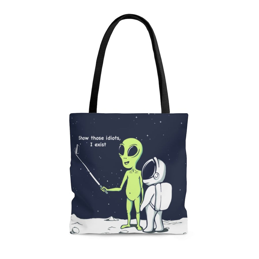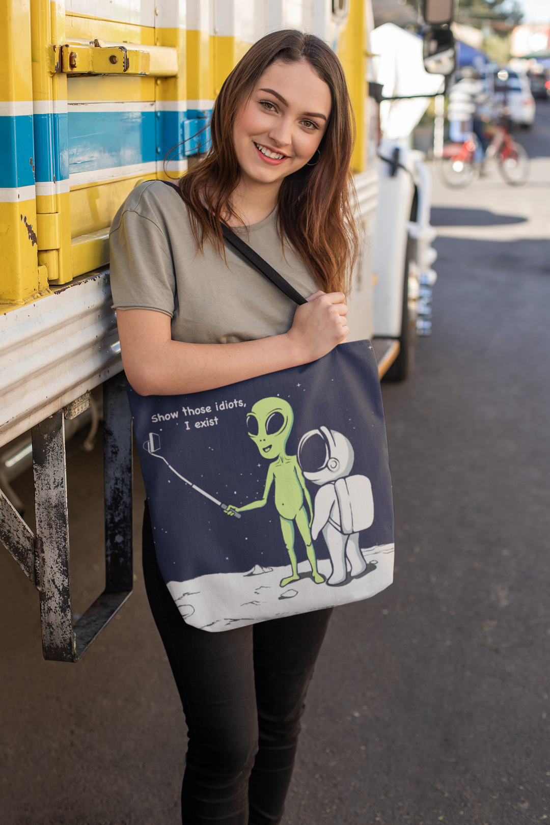 Funny Alien Show Those Idiots I Exist Everyday practical high quality Tote Bag. Comfortable with style ideal for the beach or out in town. Made from reliable materials, lasting for seasons.