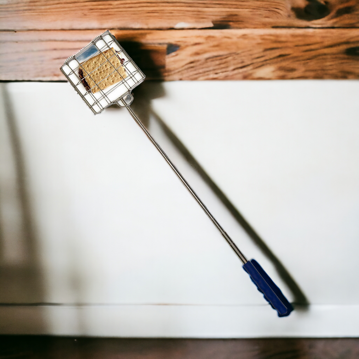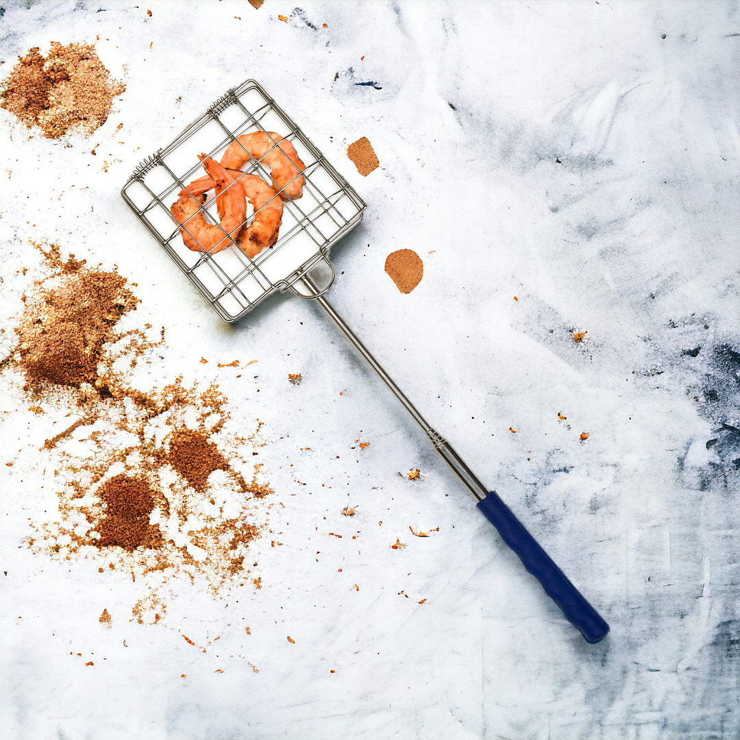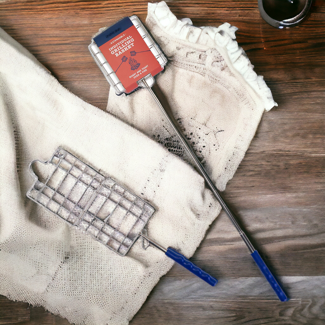 This tool is ideal for cooking over an open fire or on top of a grill. A convenient tool to have while going camping, long hikes, and BBQs. Just open up the stainless steel top and place your desired food inside, close up, extend and start grilling. Features a hinged design with a locking ring to keep your food secured while grilling.