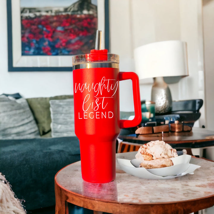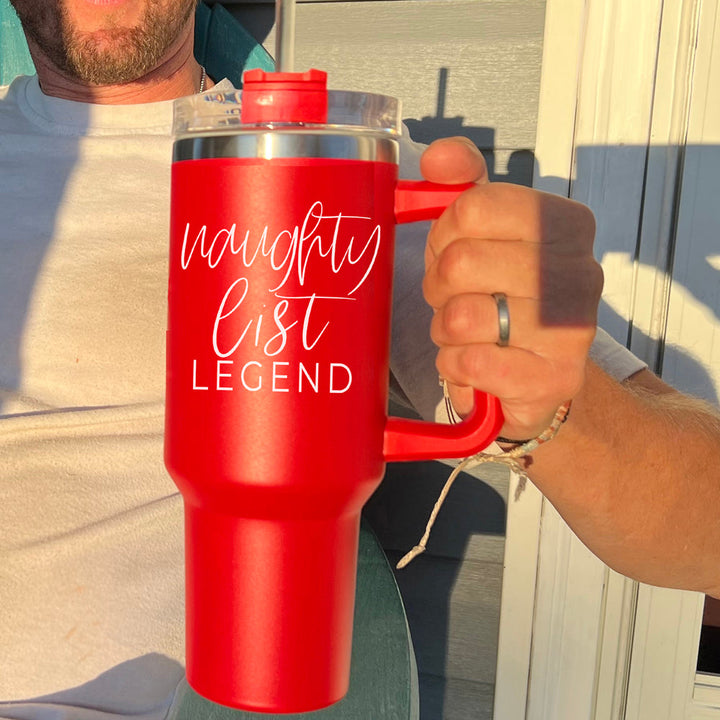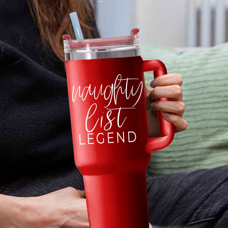 It's the stuff legends are made of - take a legendary stand against boring gifts with this Naughty List Legend oversized tumbler! With it's bright red color and hilarious quote, it's sure to put a smile on your bestie or loved one's face! The perfect gift for the naughty list legend in your life!