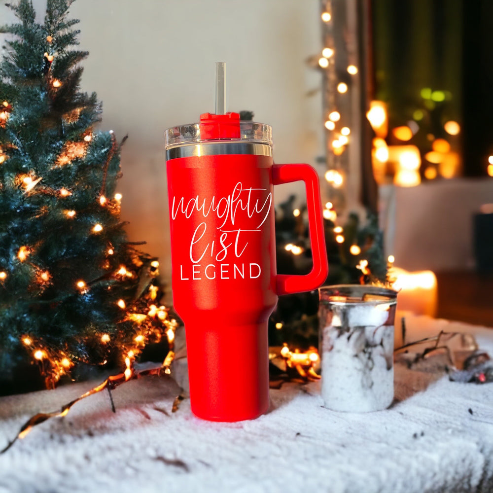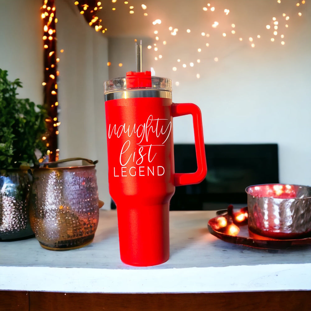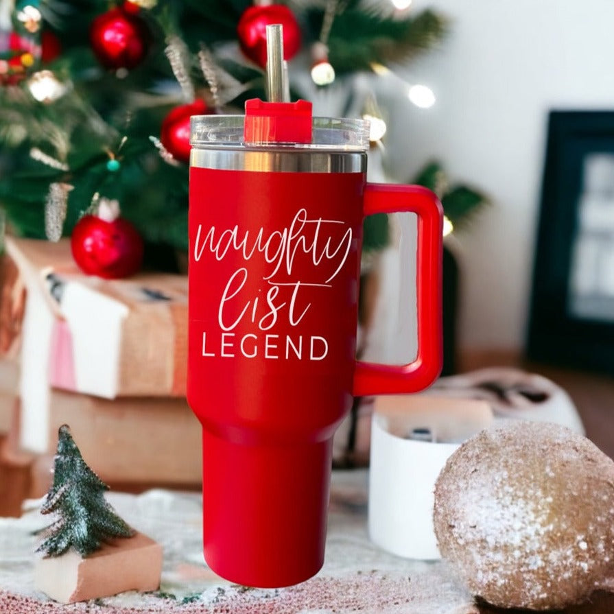 Treat your naughty-list legend to this 40oz red tumbler with a hilarious Christmas quote! Let 'em know they're an icon with this perfect present - they'll get a good giggle out of it! (It's so big it might even last until the next naughty list !)