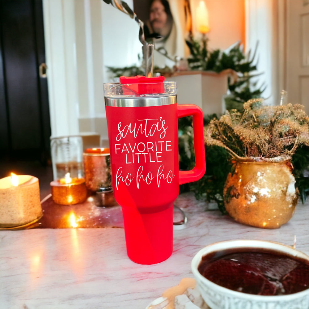 Introducing Santa's Fav Ho—the perfect mug for the most delightful (and naughty) of holiday celebrations! This amusing 40oz tumbler is sure to make your holiday extra special—ho ho ho!