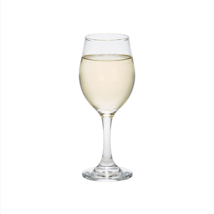 Looking for an all-purpose glass goblet? Here it is. Each clear glass goblet stands 8" tall and holds up to 11 ounces. We carefully pack 12 of these goblets in a brown corrugated carton for their own protection.