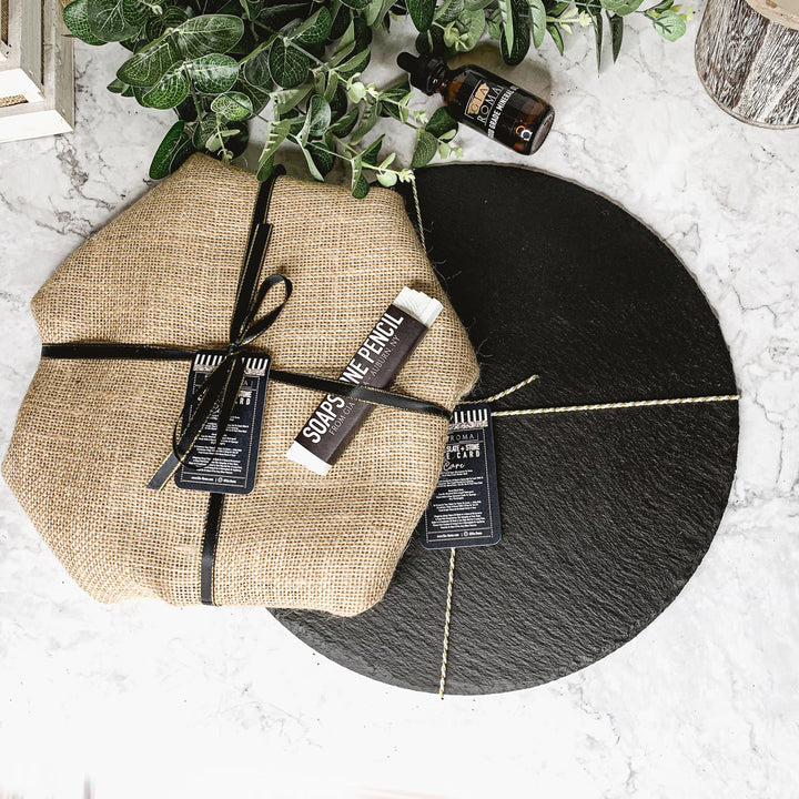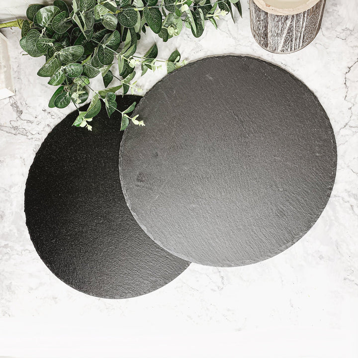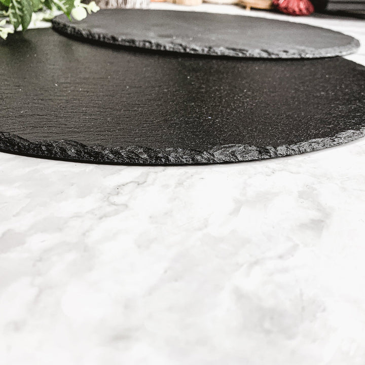 Each has a natural edge - leaving a distinctive natural surface for serving cheeses & hors d'oeurvres. Use chalk or soapstone to write on it whenever you'd like!