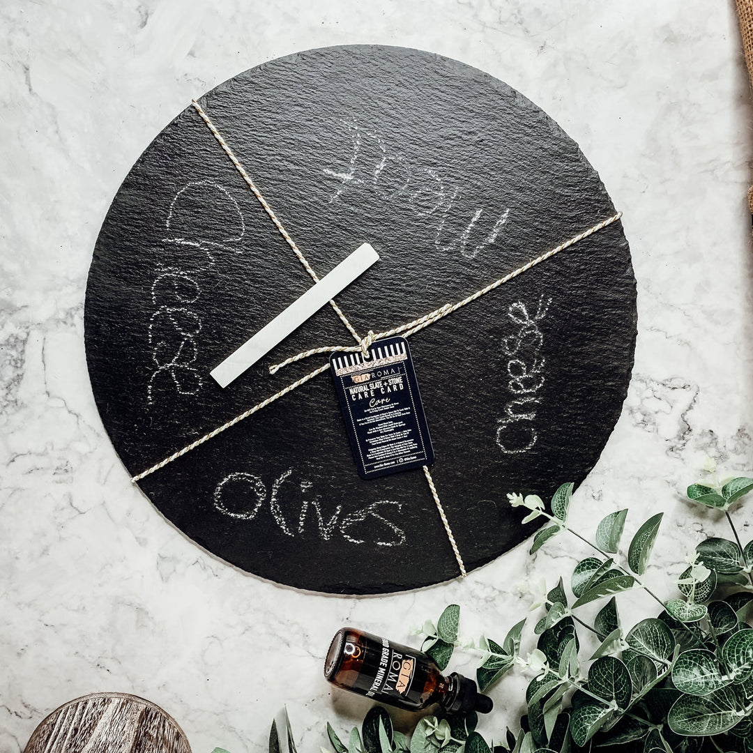 Food grade mineral oil helps to maintain the integrity of the slate and bring out the unique stratifications and color variations in the stone. Protect your slate for years to come with our bottled food grade mineral oil. Simply wipe down the stone with a drop or two of oil twice a year or as needed.
