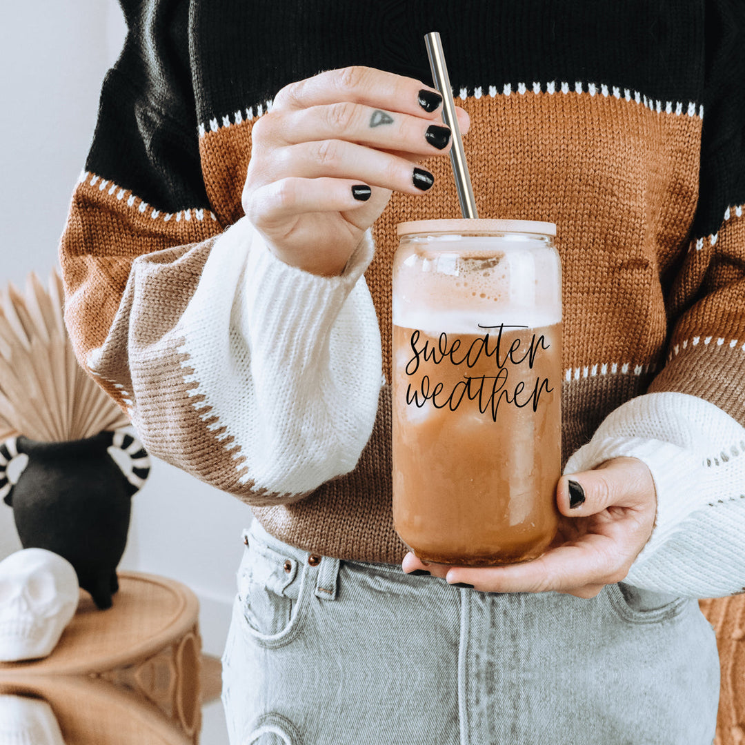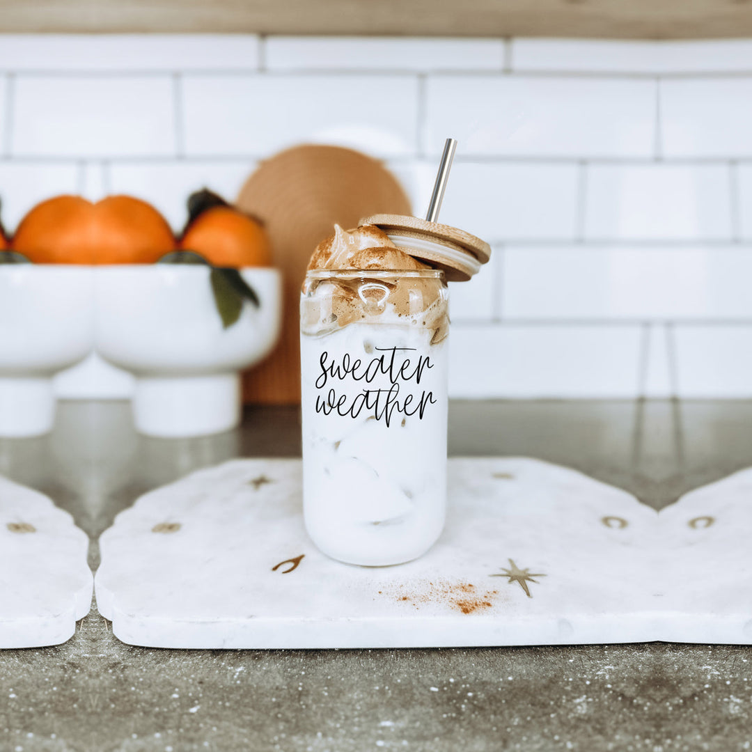 All of our glass drinking cups include a bamboo top, 2 stainless steel straws (1 bent and 1 straight) and a straw cleaner!