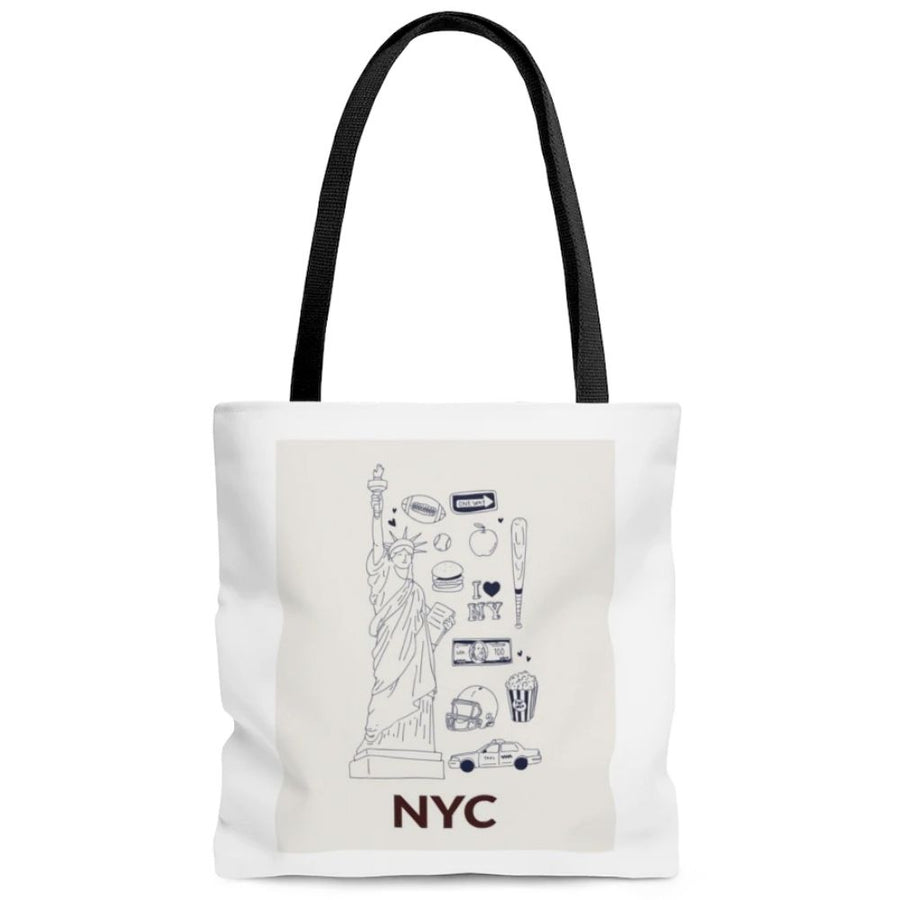 Symbols of NYC Everyday practical high quality Tote Bag.  Comfortable with style ideal for the beach or out in town. Made from reliable materials, lasting for seasons.