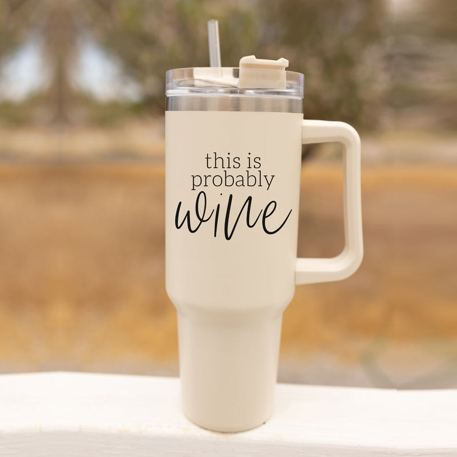 Indulge in the playful charm of the "Probably Wine" 40oz tumbler. Because life's too short not to sip from a cup that makes you smile and might just make others wonder what's in there!