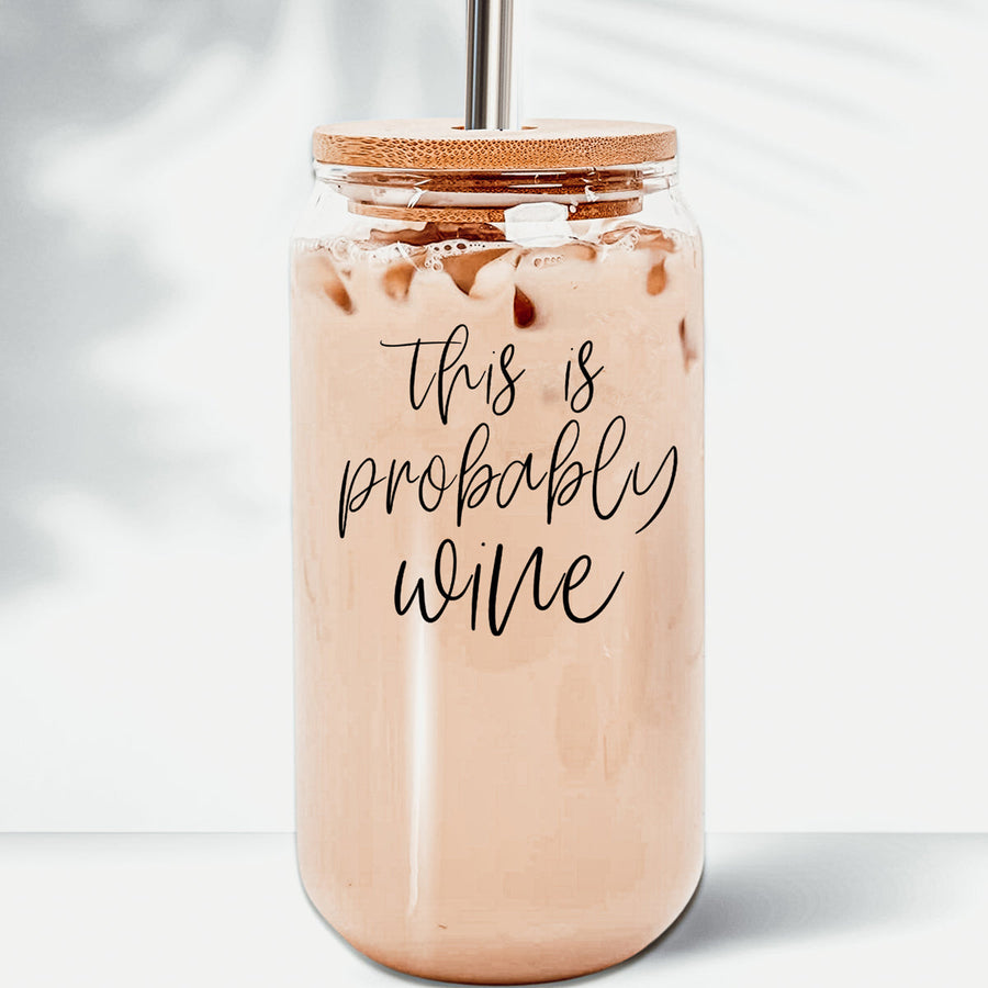 Our glasses with bamboo tops. Drink it with the top and straw of choice, remove the bamboo lid and drink straight from the glass.